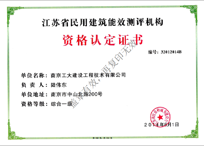民用建筑能效測(cè)評(píng)機(jī)構(gòu)資格認(rèn)定證書