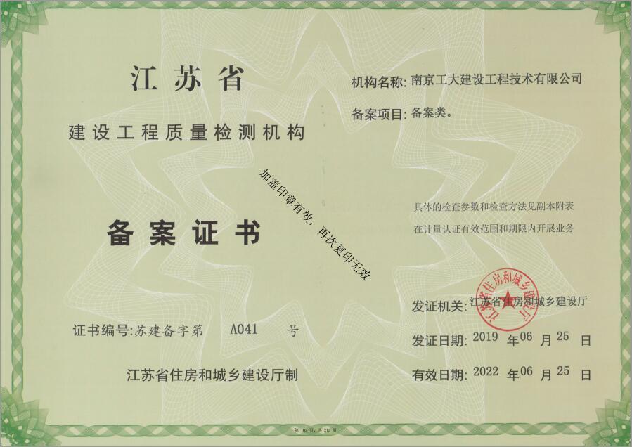 建設工程質(zhì)量檢測備案證書