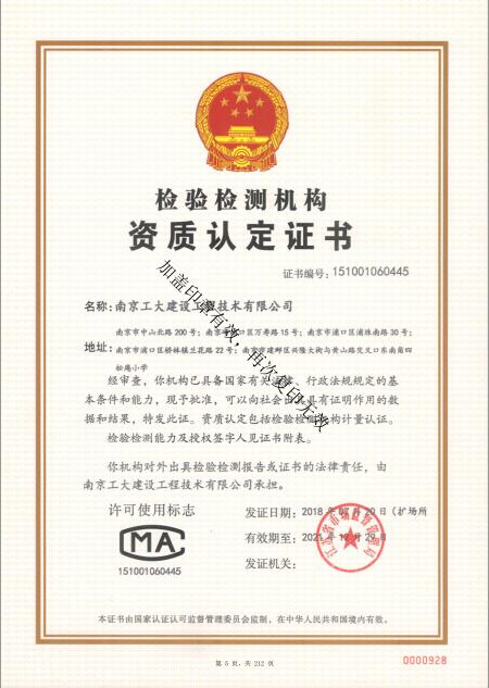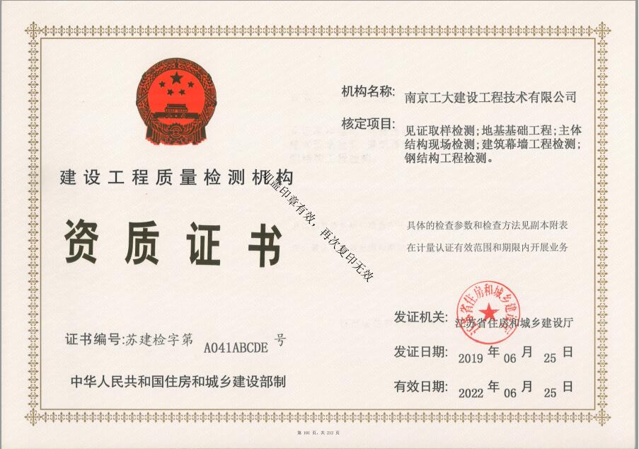 建筑工程質(zhì)量檢測機構(gòu)資質(zhì)證書