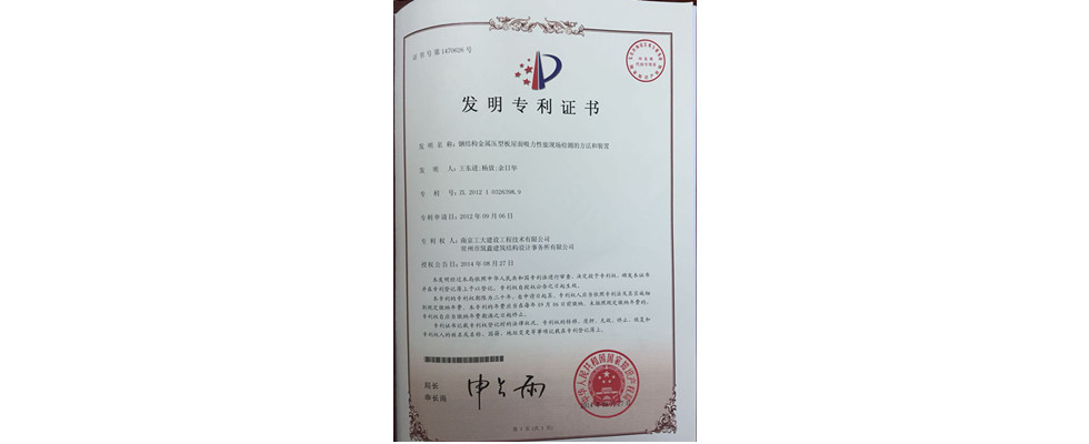 發(fā)明專利—鋼結構金屬壓型板屋面吸力性能現(xiàn)場檢測方法與裝置