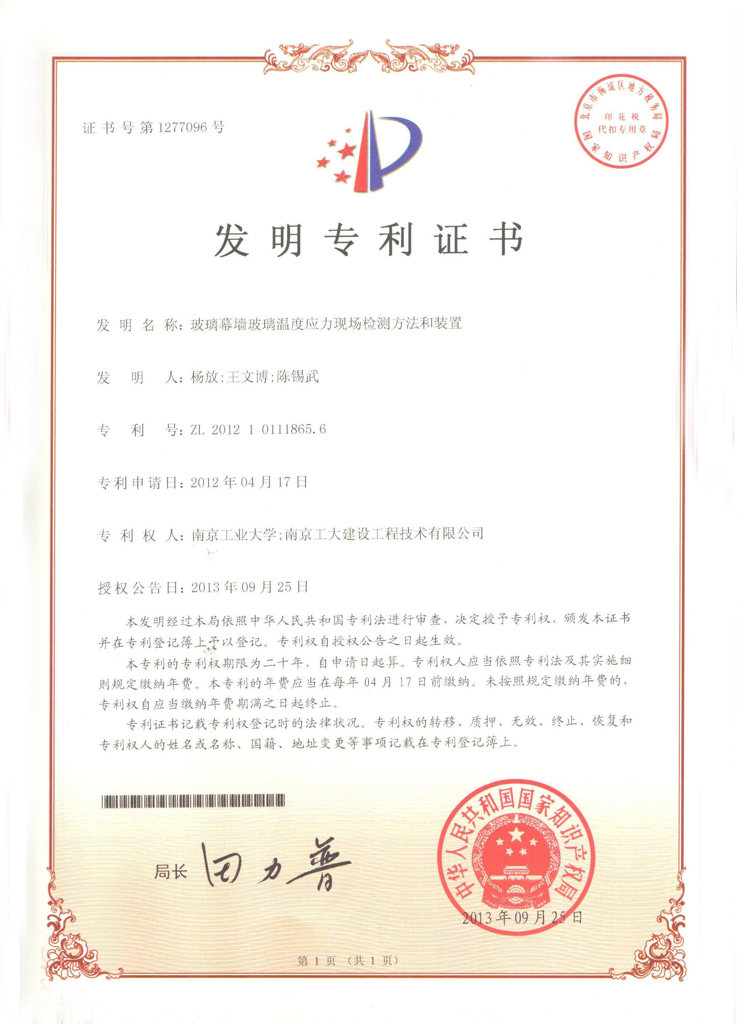 發(fā)明—玻璃幕墻玻璃溫度應力現(xiàn)場檢測方法和裝置