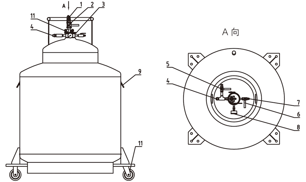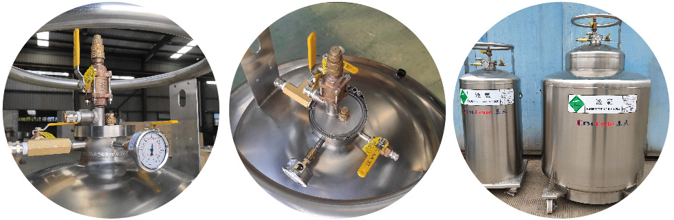 - 標(biāo)準(zhǔn)的液氦杜瓦的控制閥組及充裝接頭安裝在頂部,非常便于操作,可連接各種標(biāo)準(zhǔn)尺寸的軟管。